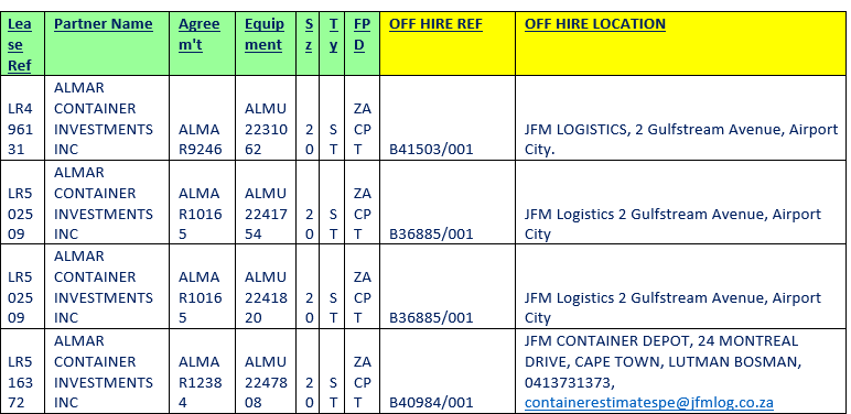 ALL 20’ST /40’ST/HC must be turned strictly into Shipping and General .