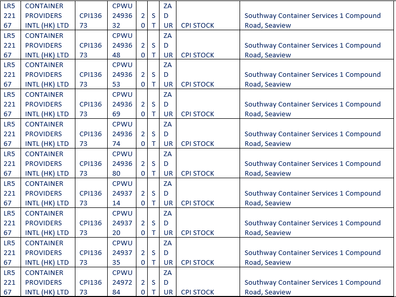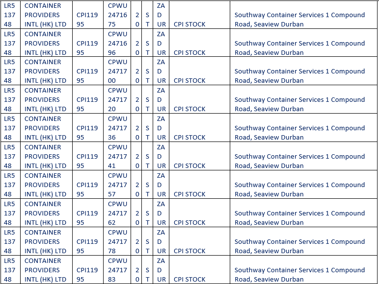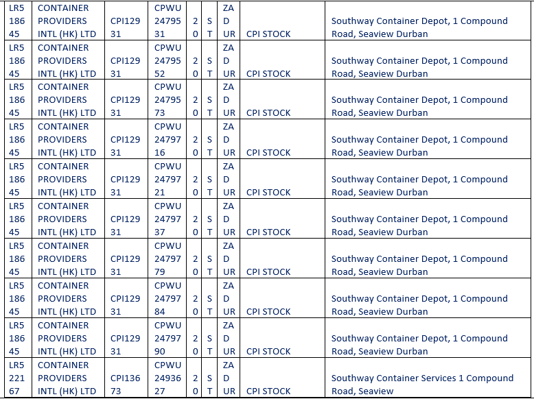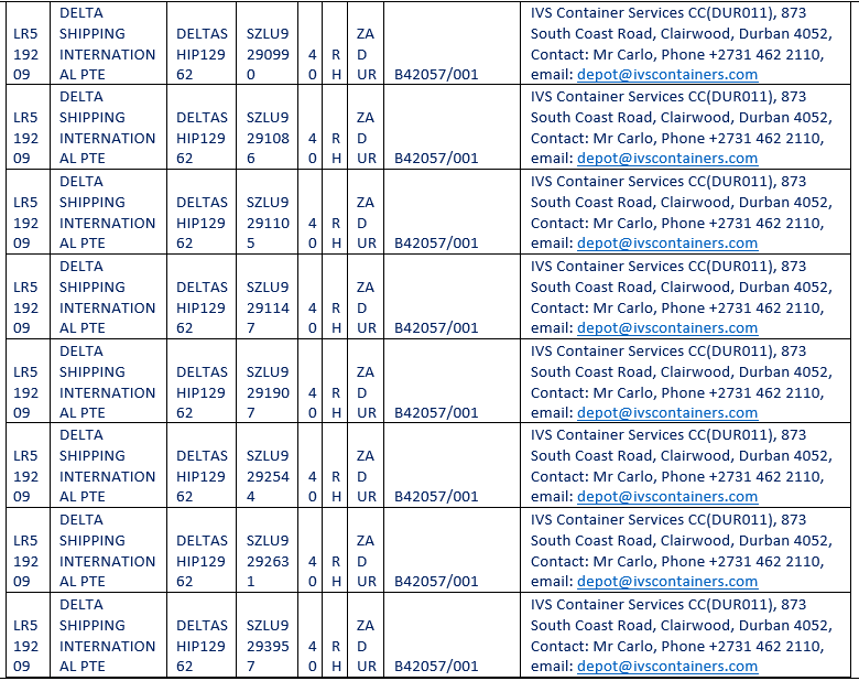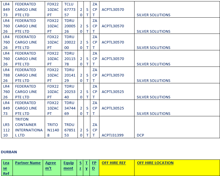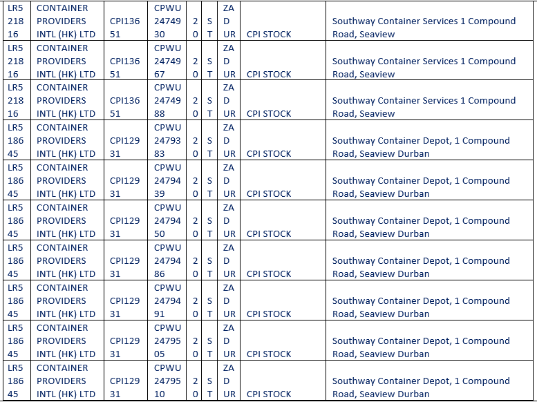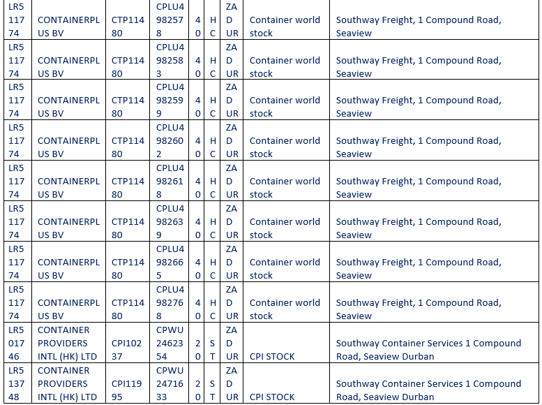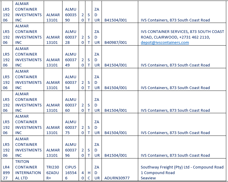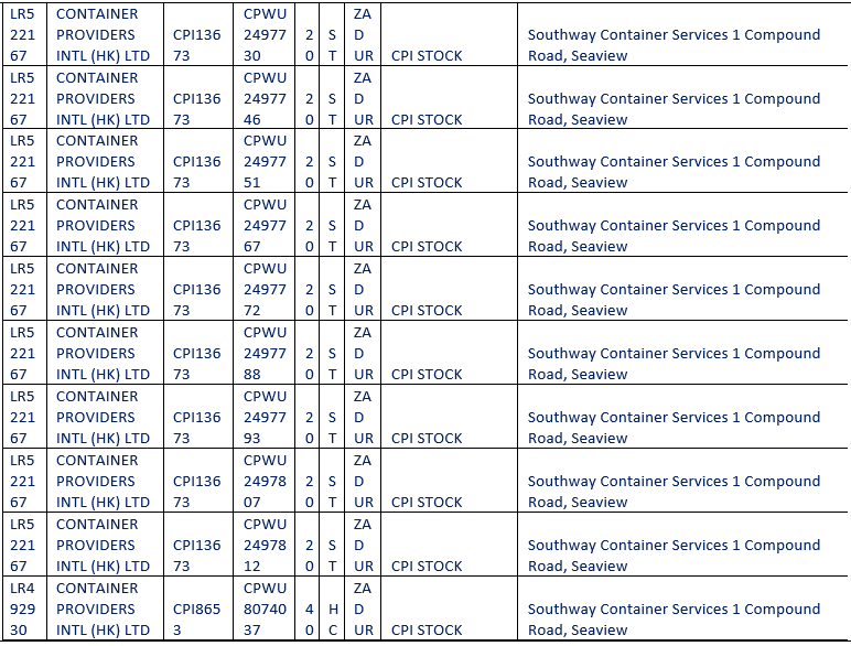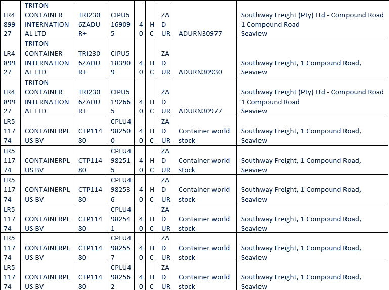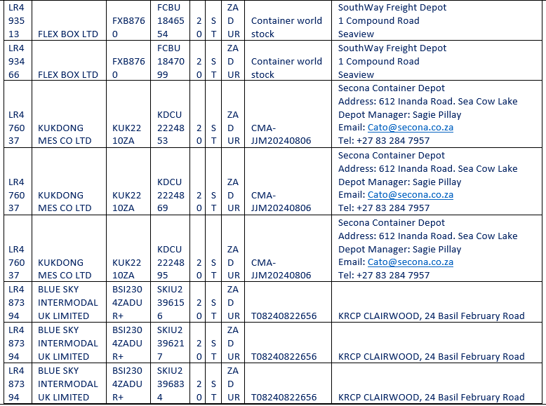 40ST / 40HC must be turned strictly into KRCP Bayhead, KRCP Clairwood & Bayhead Container Depot.
