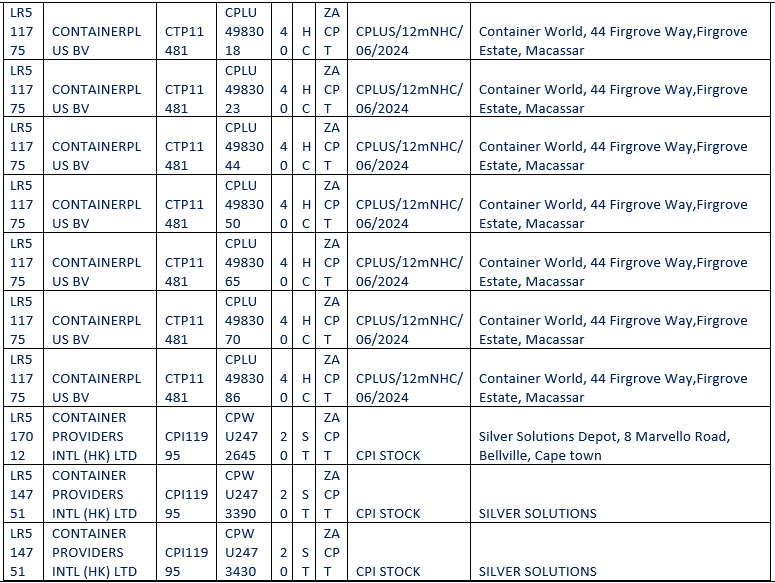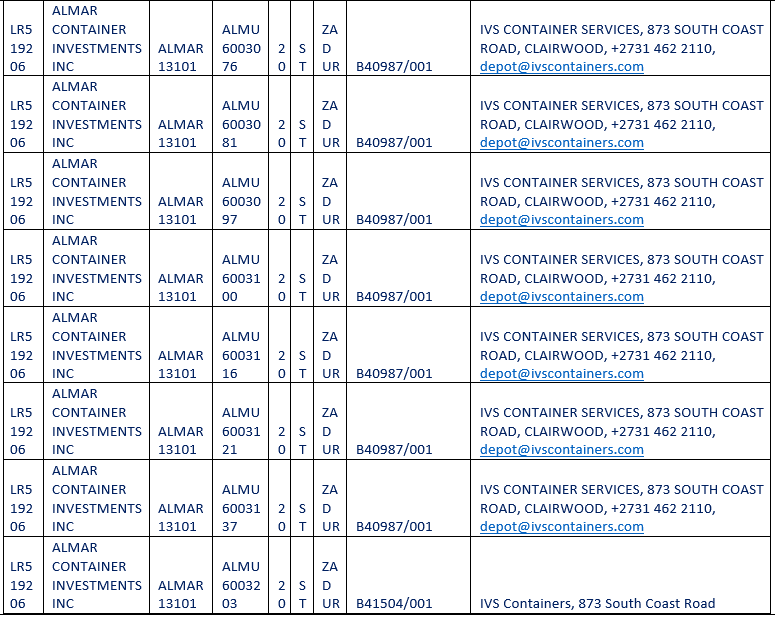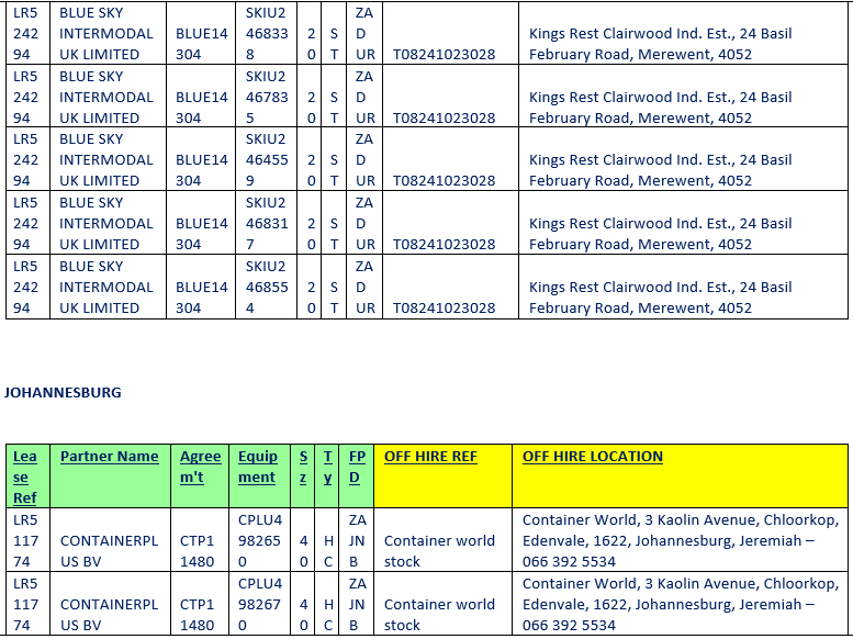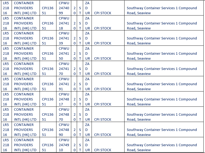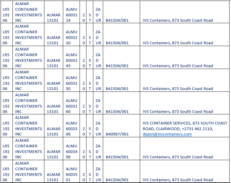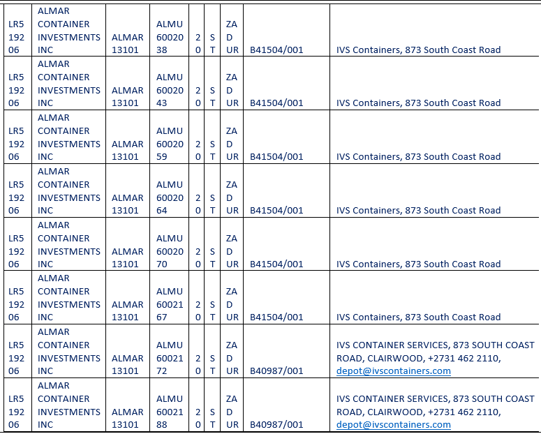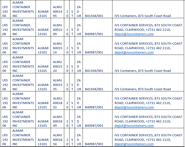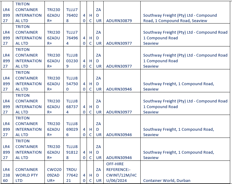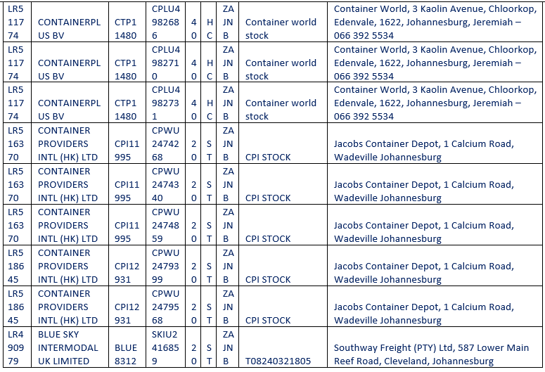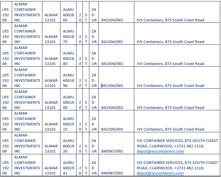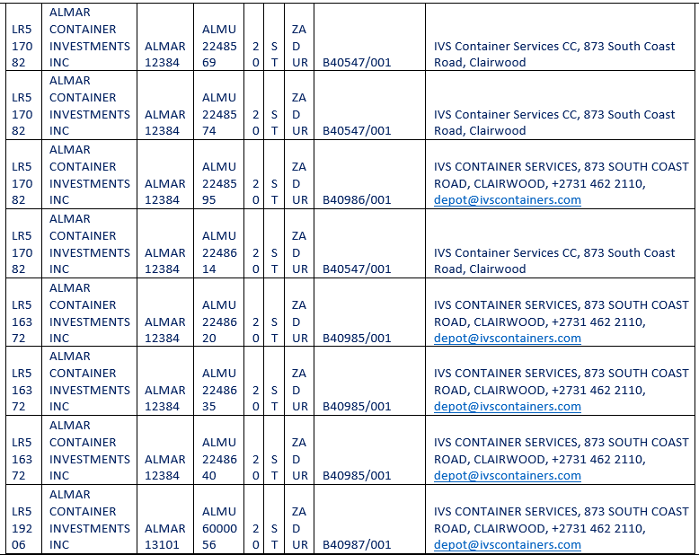 40ST / 40HC must be turned strictly into KRCP Bayhead, KRCP Clairwood & Bayhead Container Depot.