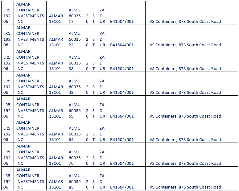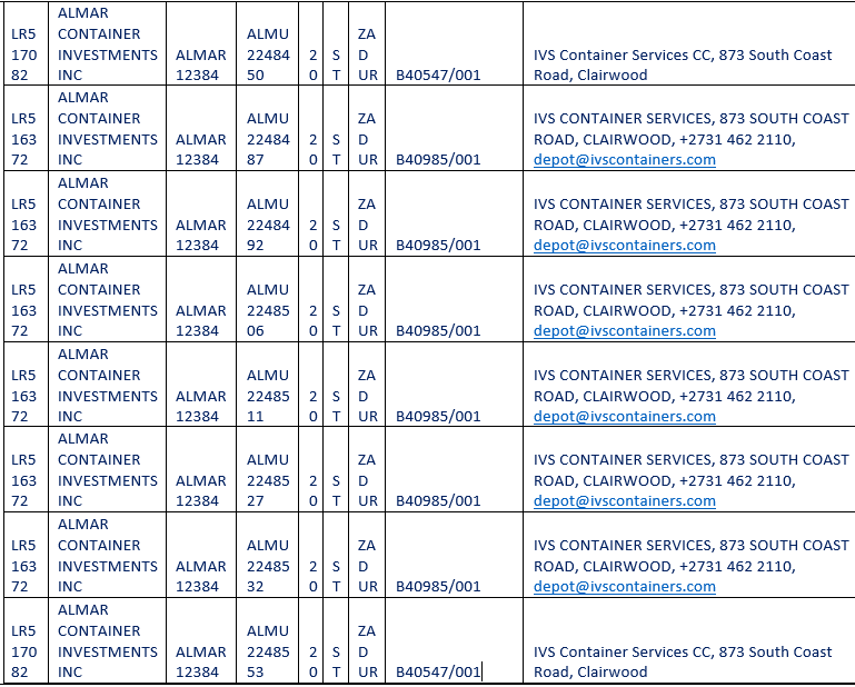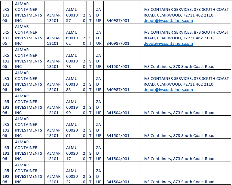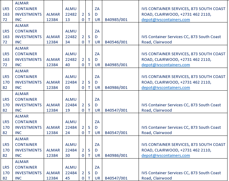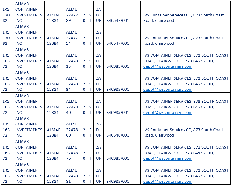 KRCP BAYHEAD, KRCP CLAIRWOOD / BAYHEAD CONTAINER DEPOT / CCIS |